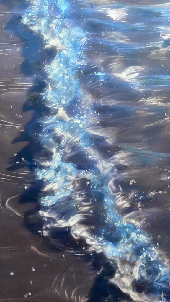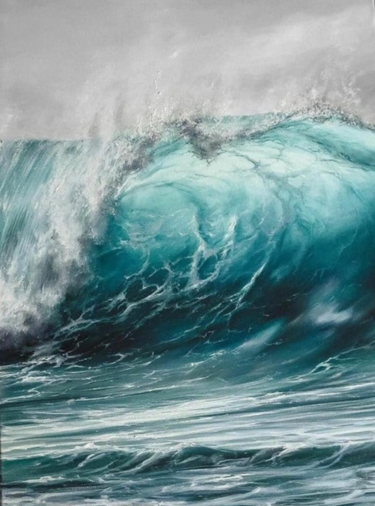 La Vague, Encre acrylique et huile sur Satin, 150X100 cm. 2023.