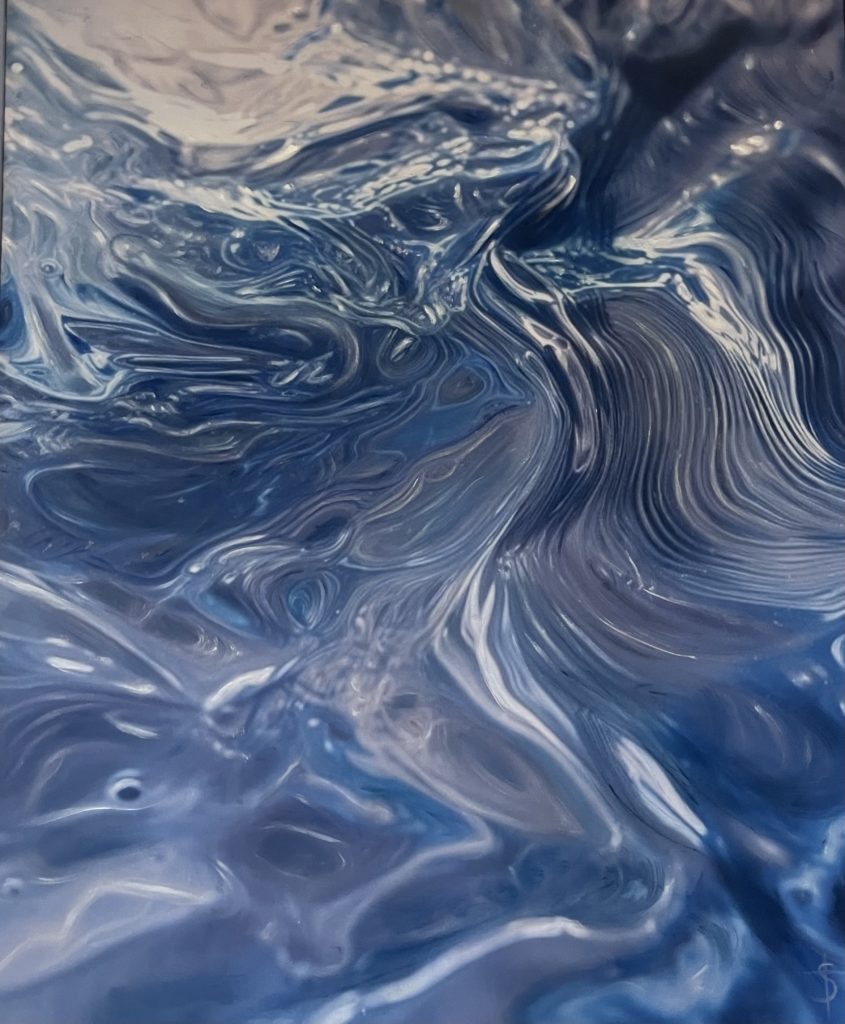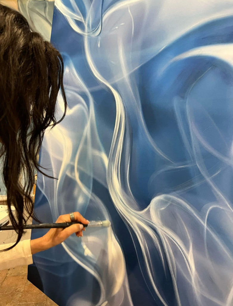 Onde, Encre acrylique et huile sur satin, 100X70 cm, 2025.